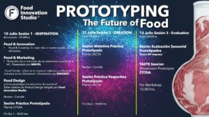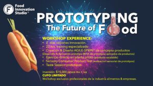 PROTOTYPING The Future of Food , es una experiencia única de innovación y tecnología de los alimentos, bajo un modelo inmersivo de workshop 100% práctico, los participantes desarrollarán habilidades para materializar prototipos de innovación explorando los futuros sabores, colores e ingredientes en tendencias a través tecnologías alimentarias , utilizado la IA para analizar al consumidor y diseñando con las últimas tecnología de procesamiento los conceptos de nuevos productos través de diferentes técnicas de prototipado, generando rápidas y escalables soluciones a los retos de innovación que demanda el consumidor para el futuro mercado de alimentos.